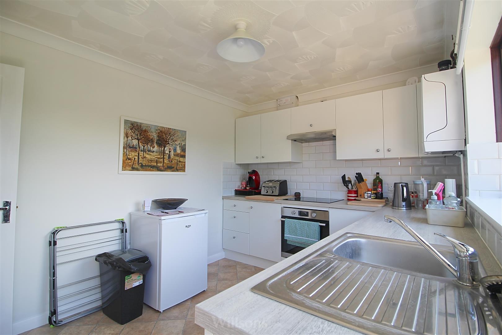 With a range of wall and base units, tiled splashbacks, stainless steel sink with mixer tap, ceramic induction hob, electric oven, space and plumbing for washing machine, recently fitted wall mounted Baxi gas central heating boiler, vinyl flooring, window and door to the rear of the property.