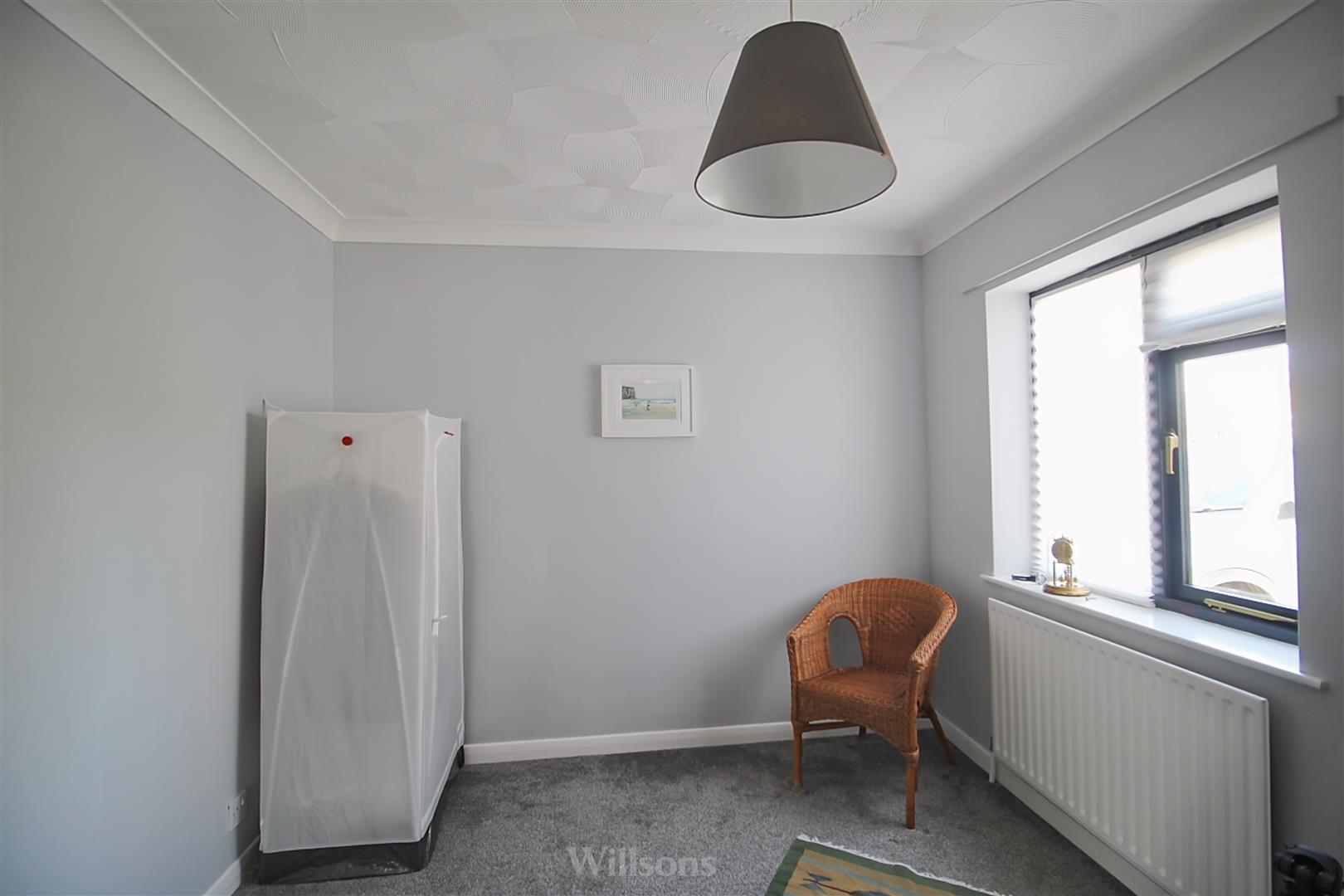 With carpeted flooring and window to the rear of the property.