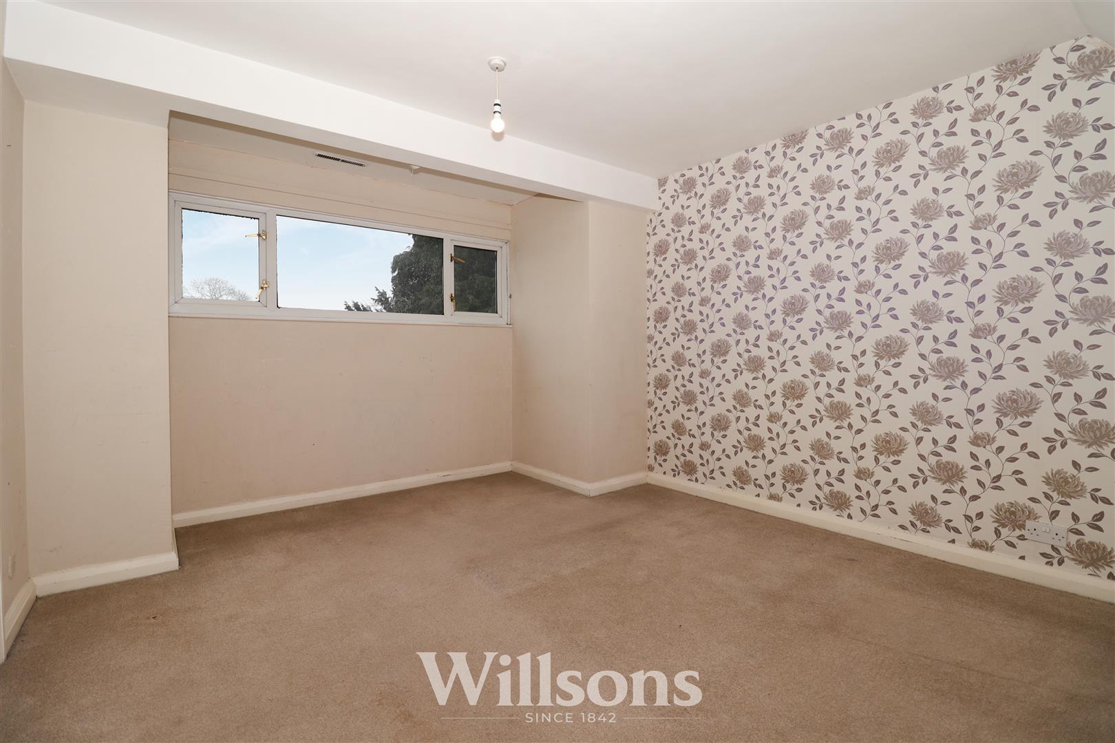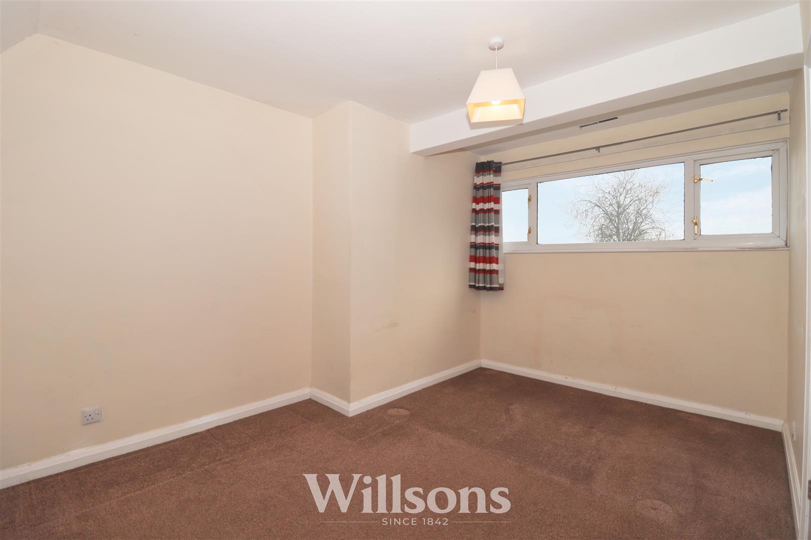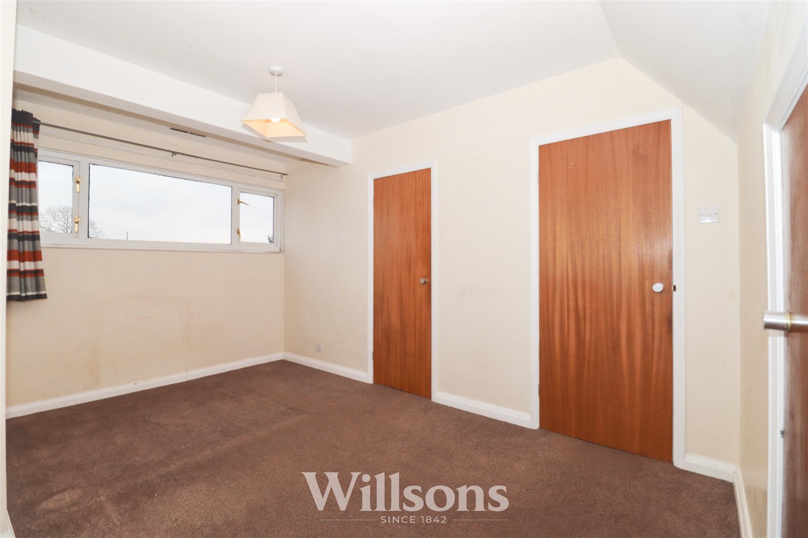 With fitted wardrobe (2.1m x 0.7m) with shelving and rail, large eaves storage cupboard with sloped ceiling (3.6m x 0.8m), carpeted flooring and high level window with rear aspects.