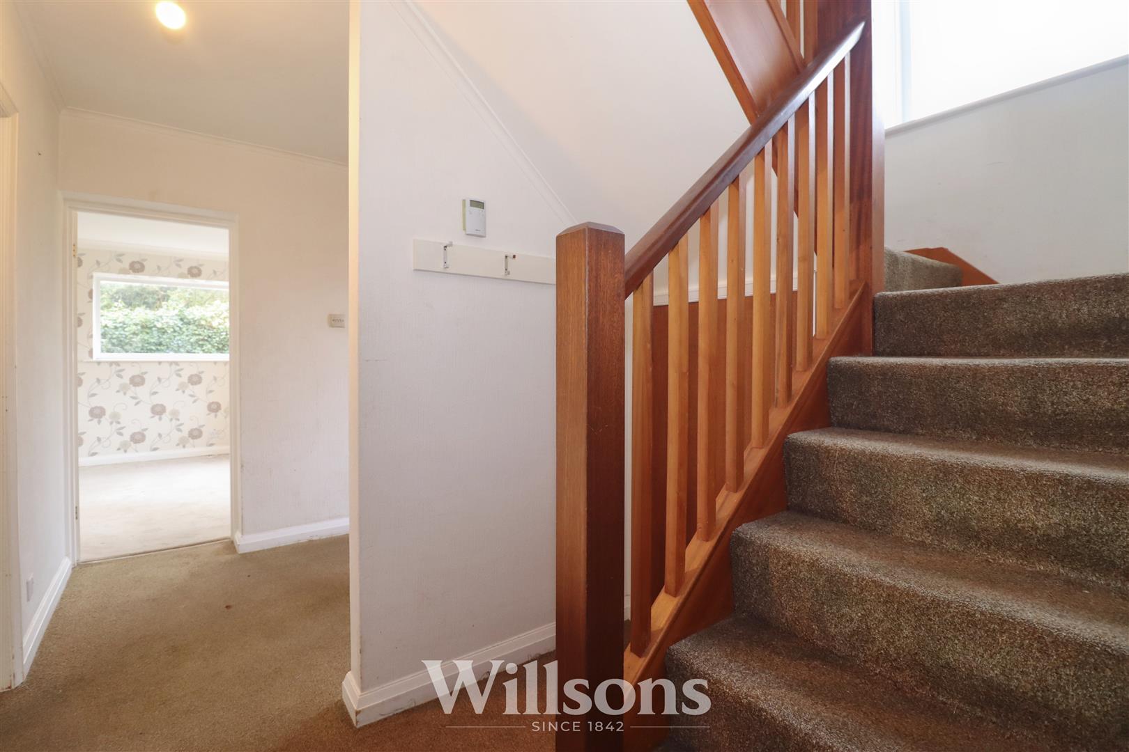 With understairs storage cupboard (0.7m x 0.8m), open stairwell, internal window to the kitchen and carpeted flooring.