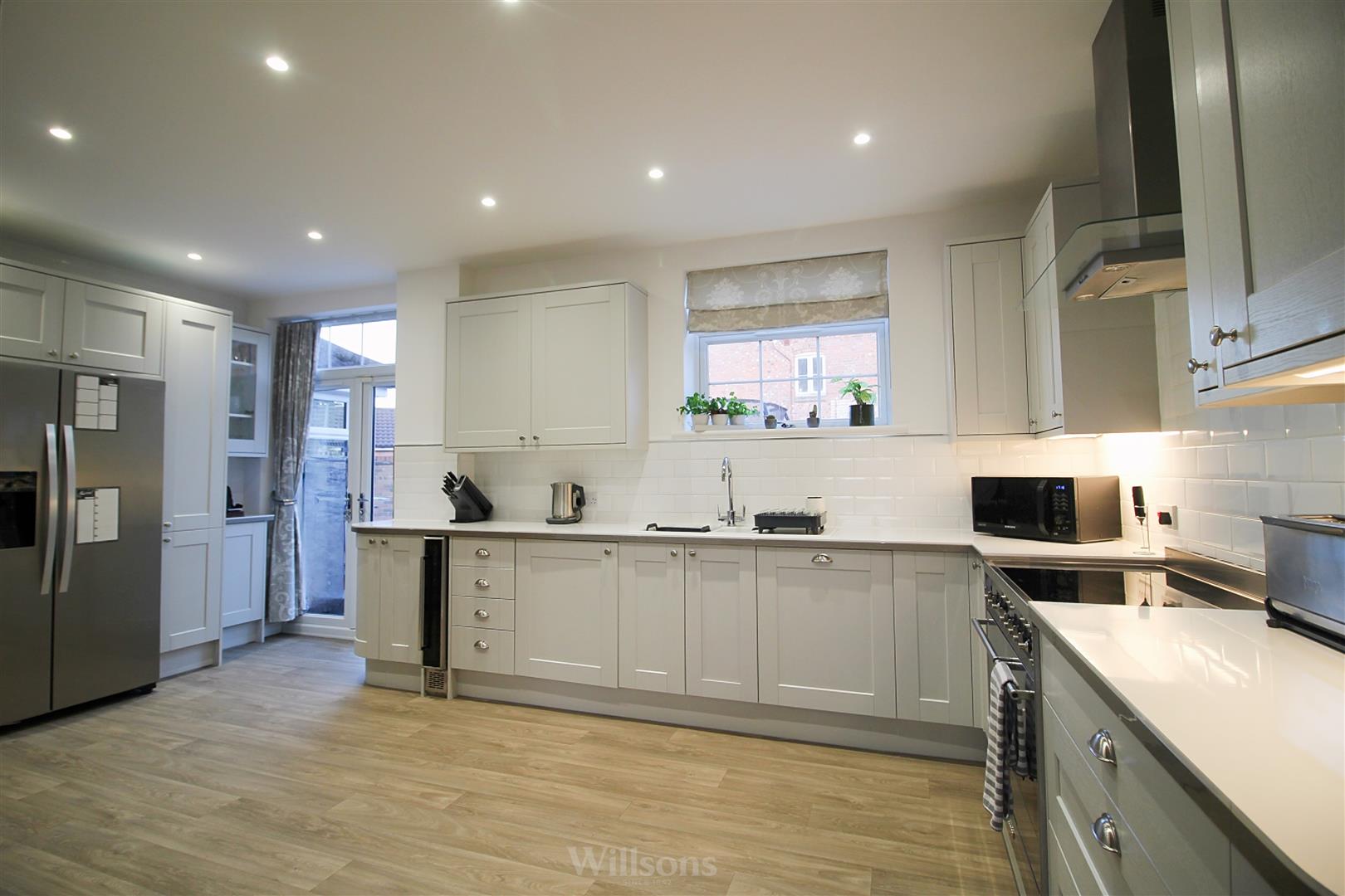 With a range of base and wall units, tiled splashbacks, 1.5 resin composite sink with mixer taps, Smeg range cooker, integrated dishwasher, integrated washing machine, extractor hood, wine cooler, American style fridge freezer, vertical radiator, vinyl flooring, French doors and window to the rear of the property.