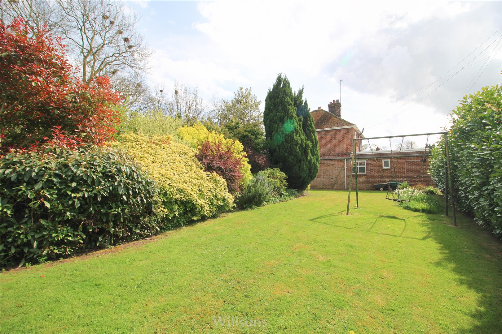 The property has a sweeping tarmac drive which leads up to the front of the property and to the side and rear leading to the garage, having a kidney shaped lawn and central bed, further shrub beds and trees to the side with paths leading to an orchard having fruit trees and soft fruit bushes. The rear boundary is denoted with a plain wire and concrete post fence. Note: The hand gate is not to be used. Within this fence is a screen hedge, a cultivated vegetable patch and rear path with hand gate leading onto the enclosed rear garden which gives access to the rear conservatory.