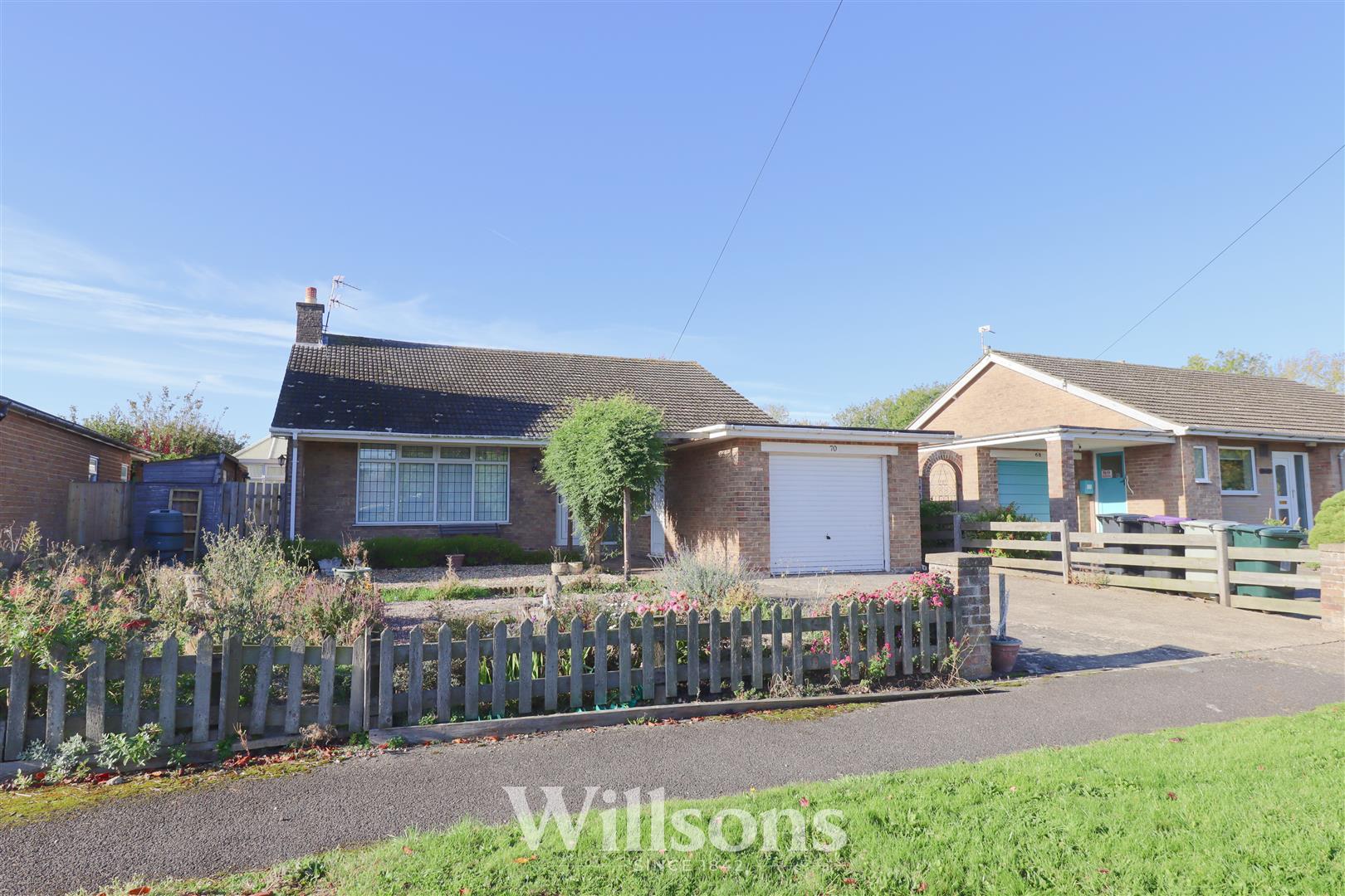 This three bedroom detached bungalow offers a triple aspect, well proportioned living dining room, double height conservatory, low maintenance frontage and south west facing garden with views over pastureland. With integral garage and driveway, the property benefits from uPVC double glazing and gas-fired central heating throughout and is set in a cul-de-sac location, is within walking distance of amenities and the local schools and is brought to the market with no onward chain.