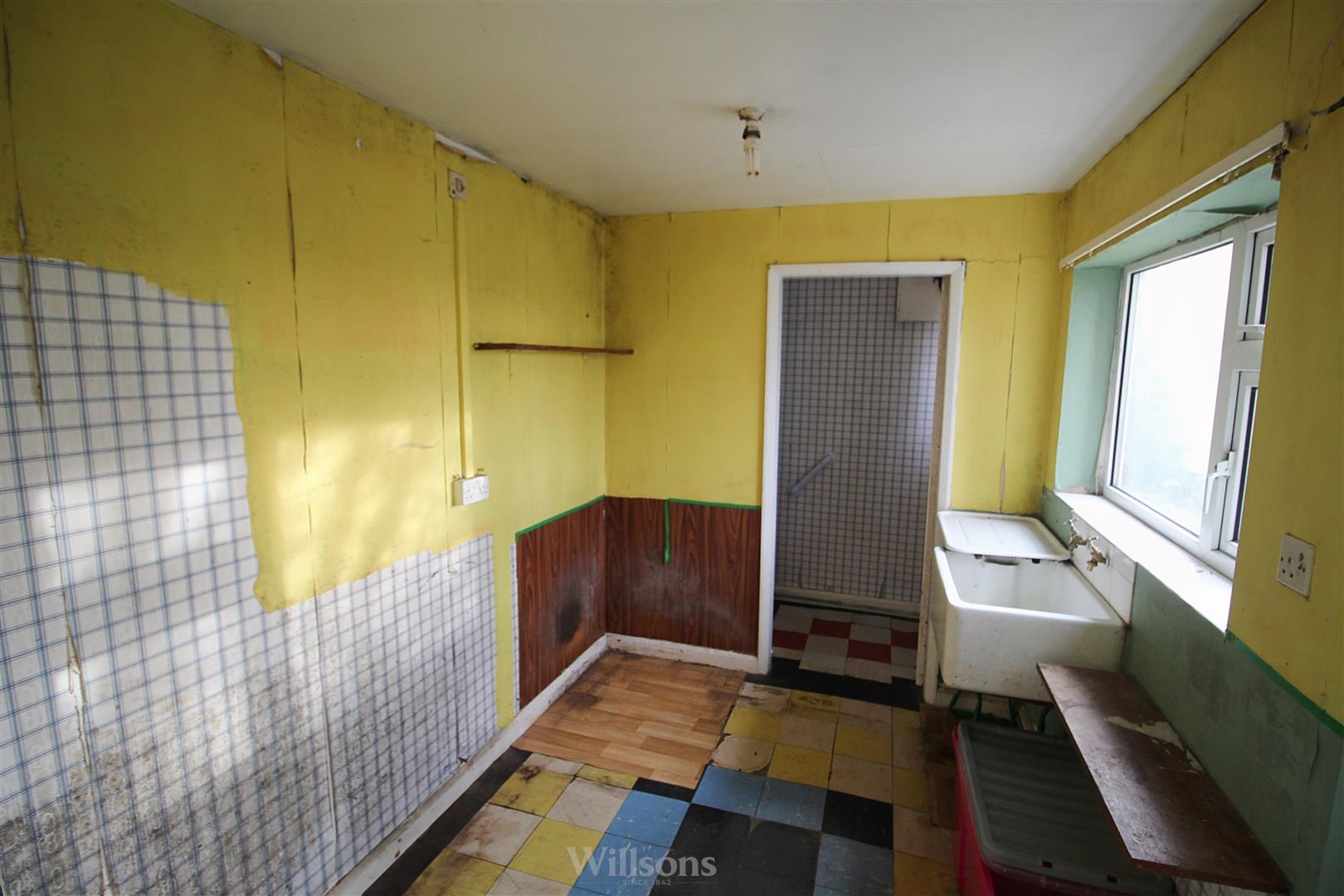 With WC, tiled flooring and timber single glazed window to the rear of the property.