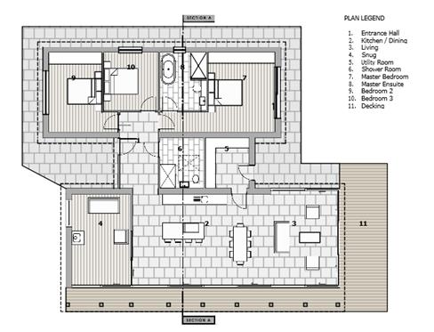 External dimensions of the dwelling including the canopy 208.3 m2 (2241 ft2).