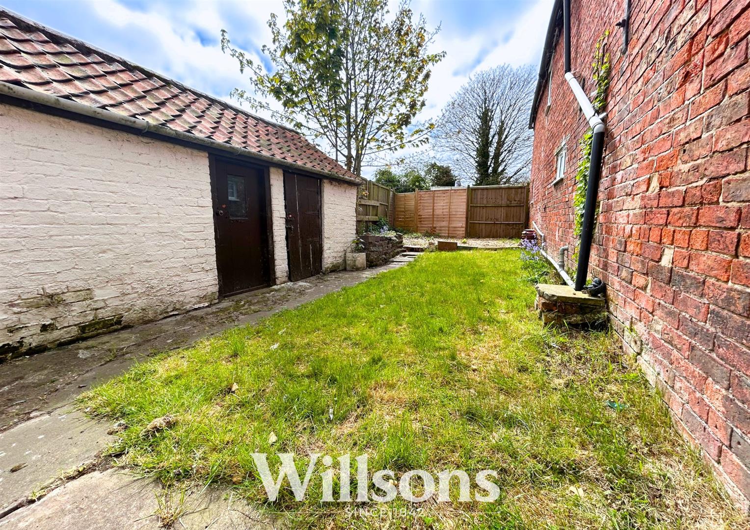 A side gate gives access to the enclosed rear garden with storage sheds.