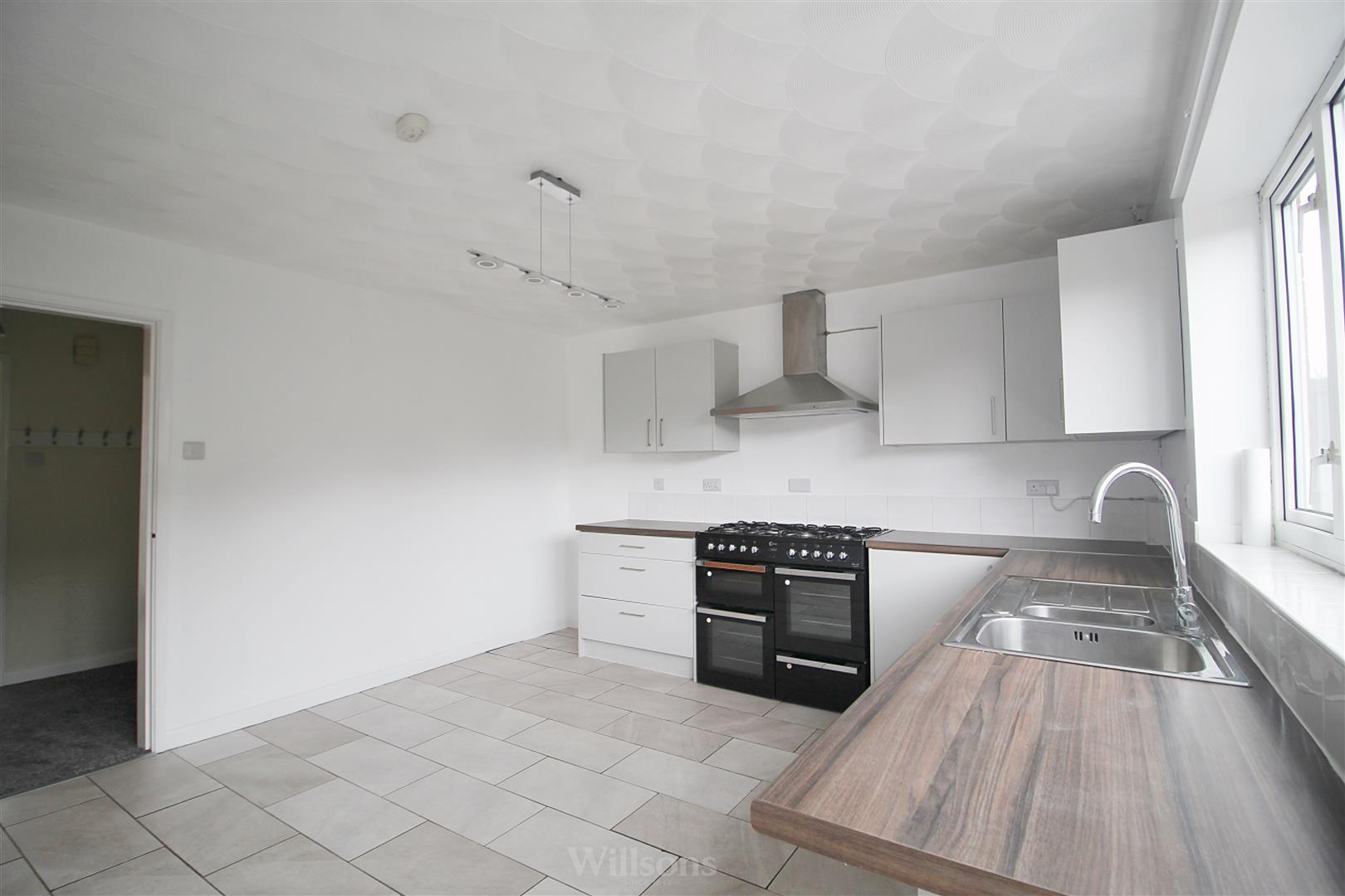 With a range of base and wall units, 1.5 stainless steel sink with mixer taps, extractor hood, 7 gas burner and electric range cooker, space and plumbing for washing machine, tiled flooring and windows and door to the rear of the property.