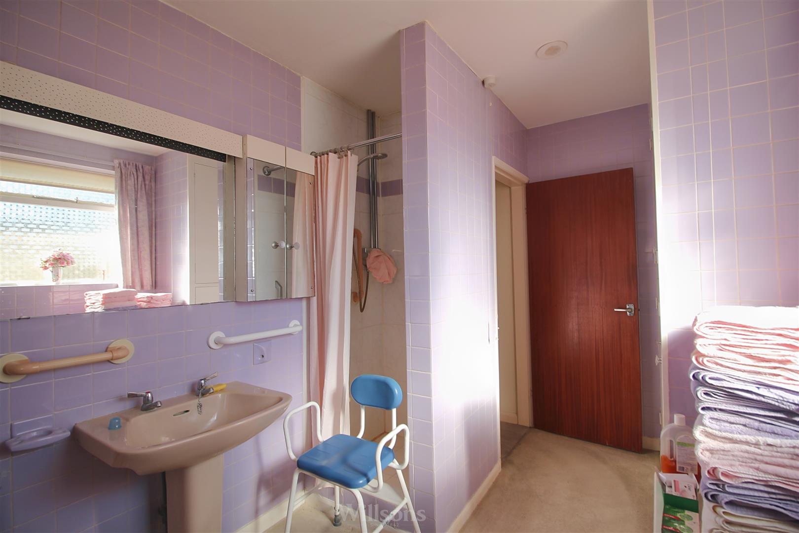 With bath, sink, WC, shower cubicle having direct feed shower over, extractor fan, floor to ceiling double storage/airing cupboard, carpeted flooring and window to the side of the property.