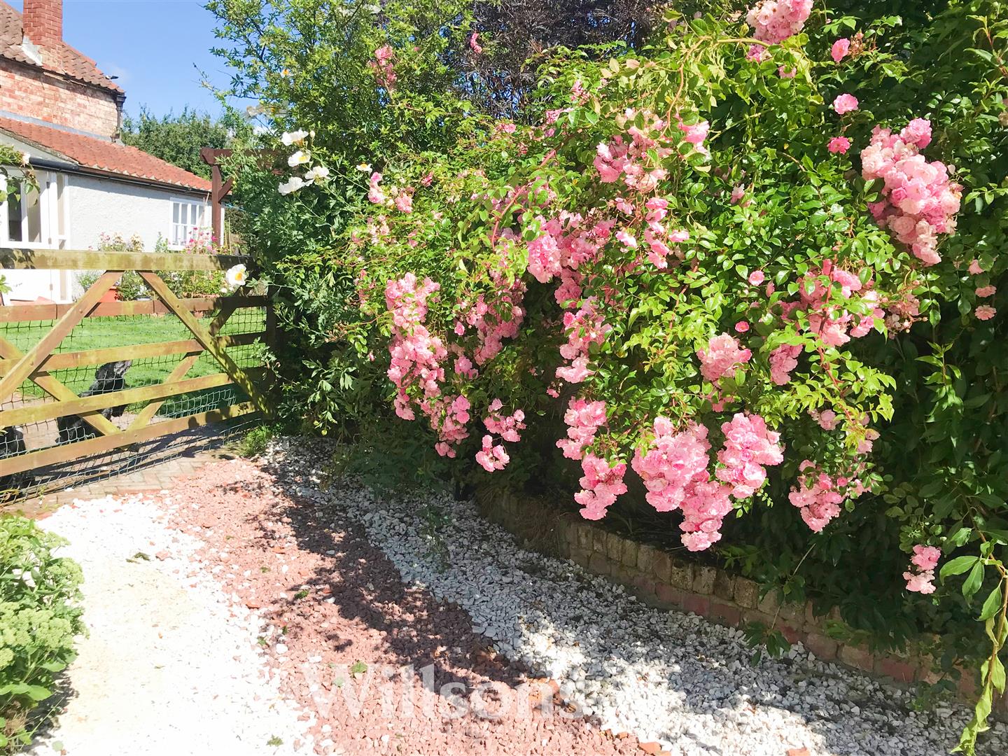 Wrap-around gardens, with areas of patio and pathways of traditional brick, wooden five-bar gate, walled archways with wrought iron gate, raised flowerbeds with dwarf walls, feature well pump and trough, lawns and mature cottage garden borders.
