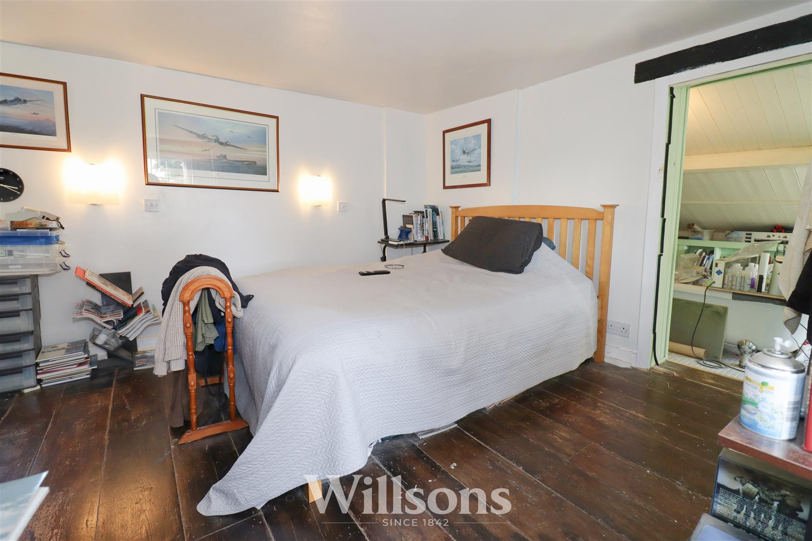 ‘L’ shaped room with television point, full height storage cupboard, windows to the front and rear of the property and wooden flooring.