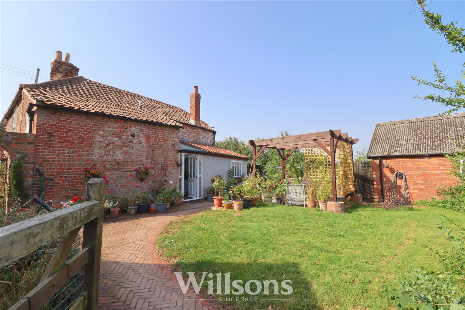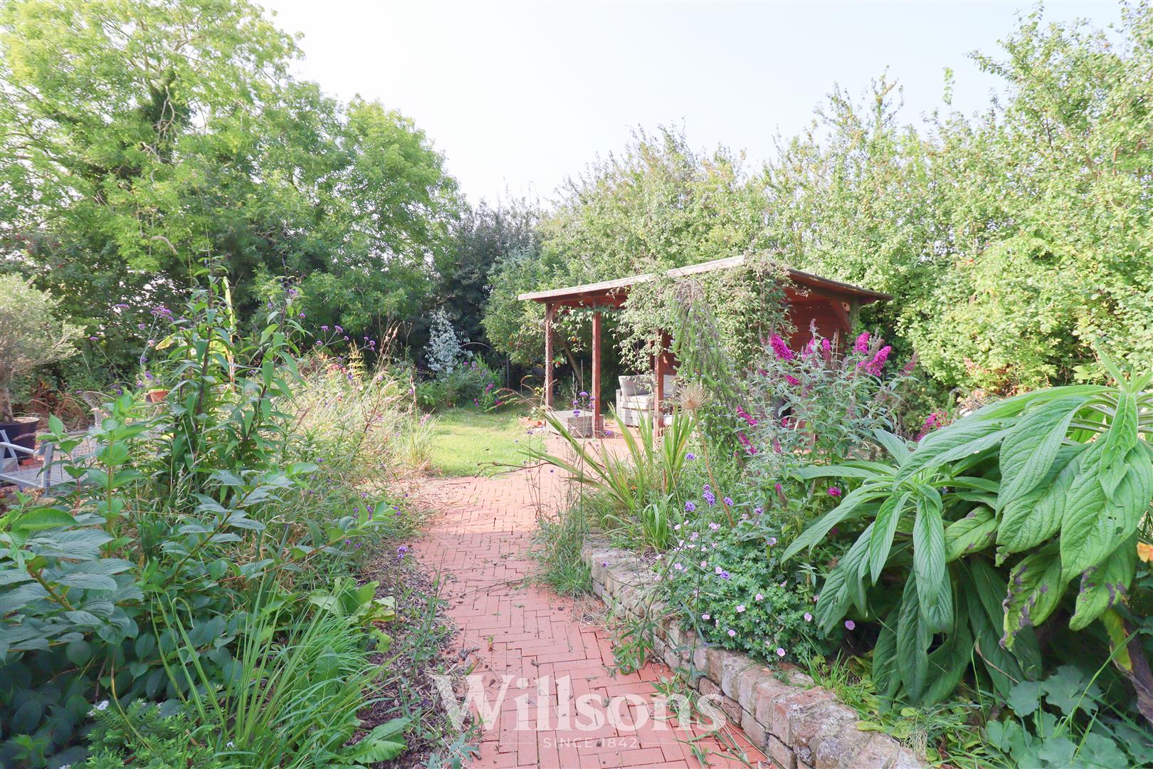 With areas of patio and pathways of traditional brick, summerhouse, raised flowerbeds with dwarf walls, areas of lawn, vegetables gardens and cottage gardens, property boundaries of fencing, mature hedging and trees.