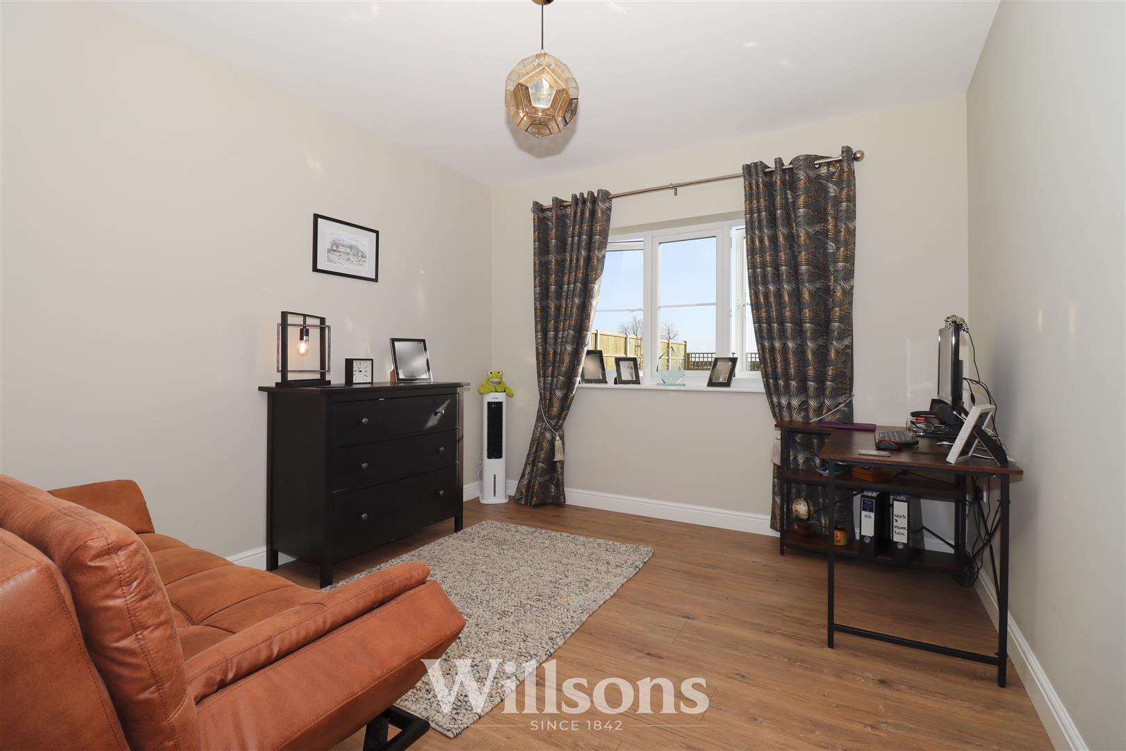With room thermostat, laminate flooring and dual opening window with views over the rear garden and fields beyond.