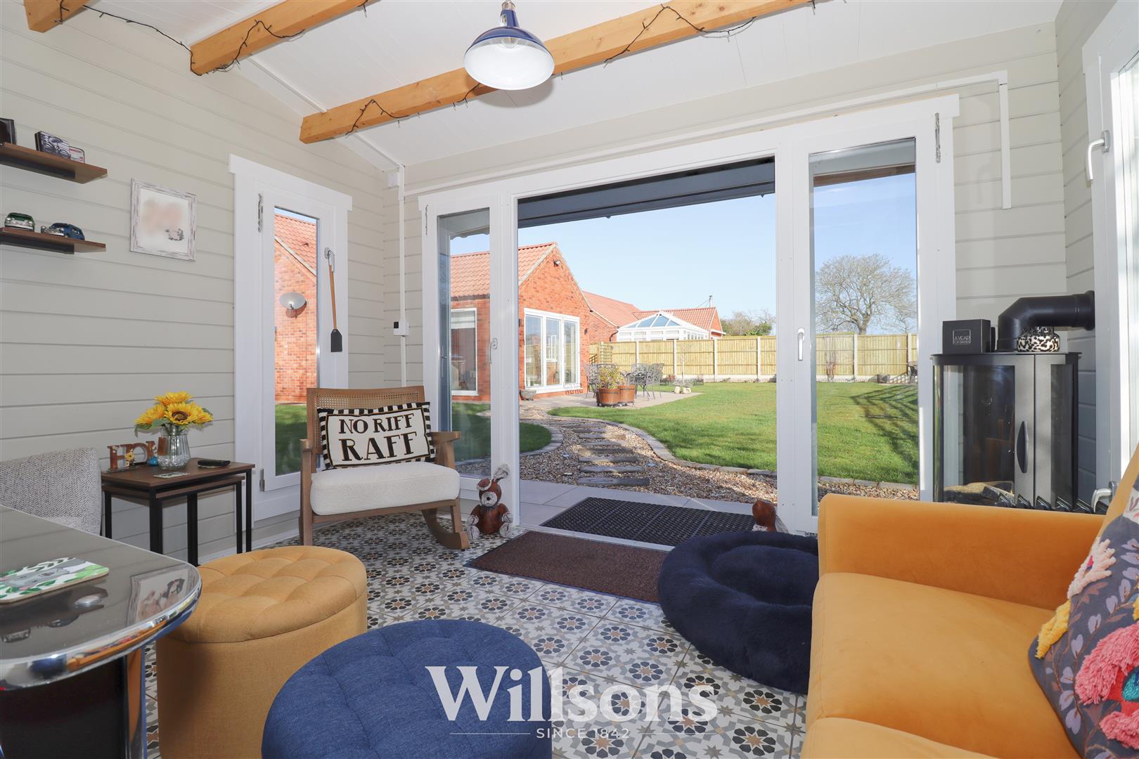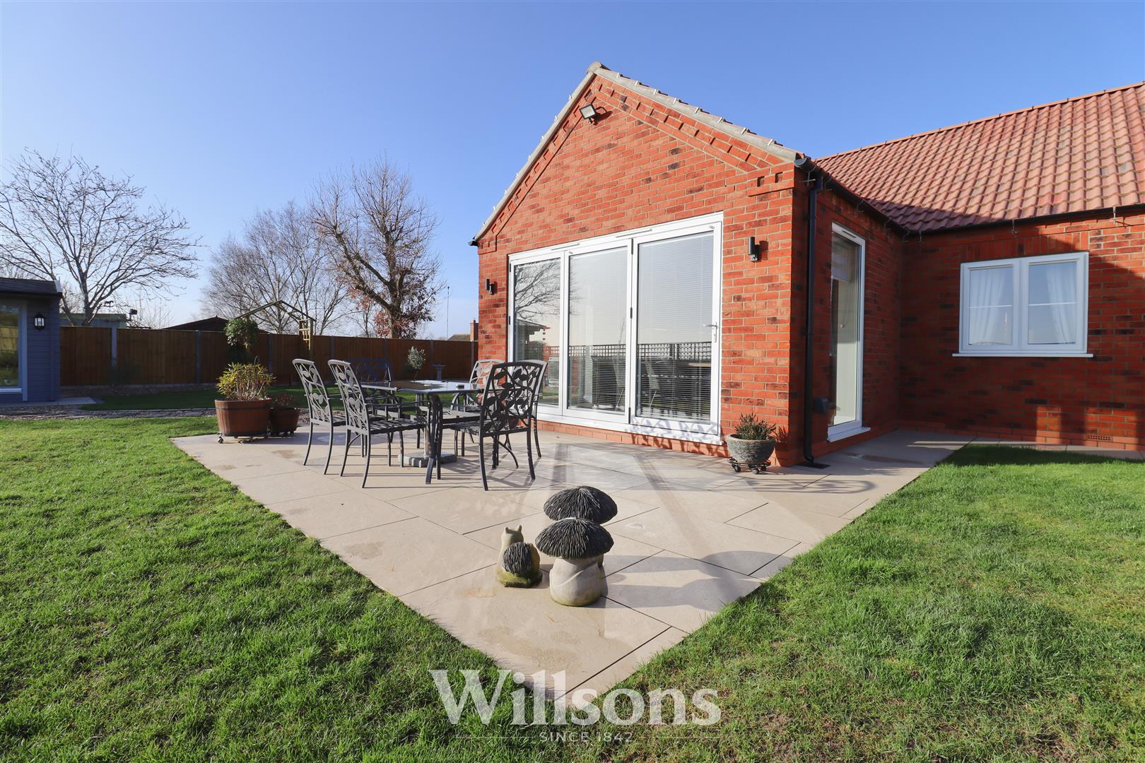 Completed in 2023, this beautifully built detached bungalow sits well back from the road and enjoys uninterrupted, far reaching views over open countryside for a truly immersive outdoor living experience. Designed with modern living in mind, the home combines energy efficiency with high end finishes, including solid oak internal doors, coordinated hard flooring, and underfloor heating throughout powered by an air source heat pump. The property offers fully enclosed gardens with a porcelain tiled terrace and pathways, a charming summerhouse, and a generous outdoor space perfect for relaxing or entertaining. Additional features include CCTV, an intruder alarm system, and a detached double garage with electric doors and an EV charging point. Inside, the layout is both stylish and practical. There are three well proportioned (double) bedrooms, including a master with en suite, and a spacious dining kitchen complete with a central island, integrated appliances, and bi fold doors opening directly onto the terrace. With its impressive ‘B’ energy rating and near show home presentation, this turn-key coastal retreat offers a peaceful escape from the hustle and bustle of everyday life.