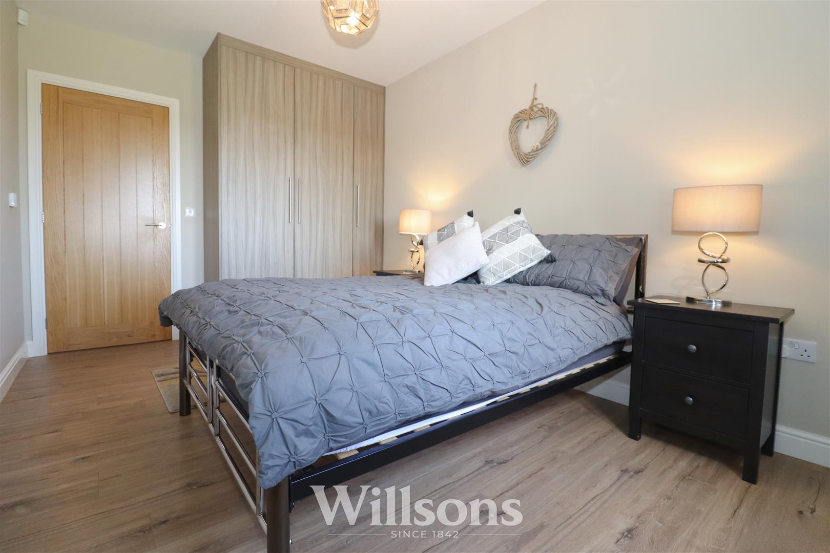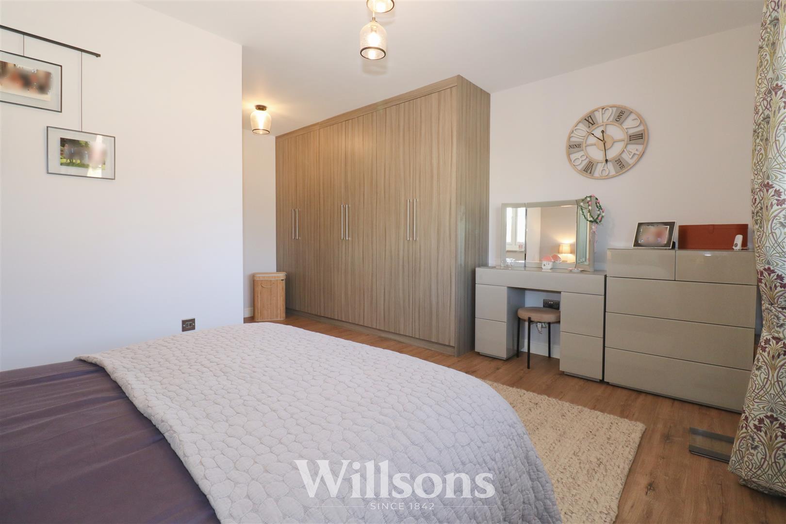 ‘L’ shaped master suite with wall of bespoke fitted wardrobes (3.0m x 0.6m), laminate flooring, room thermostat and dual opening window to the front of the property.