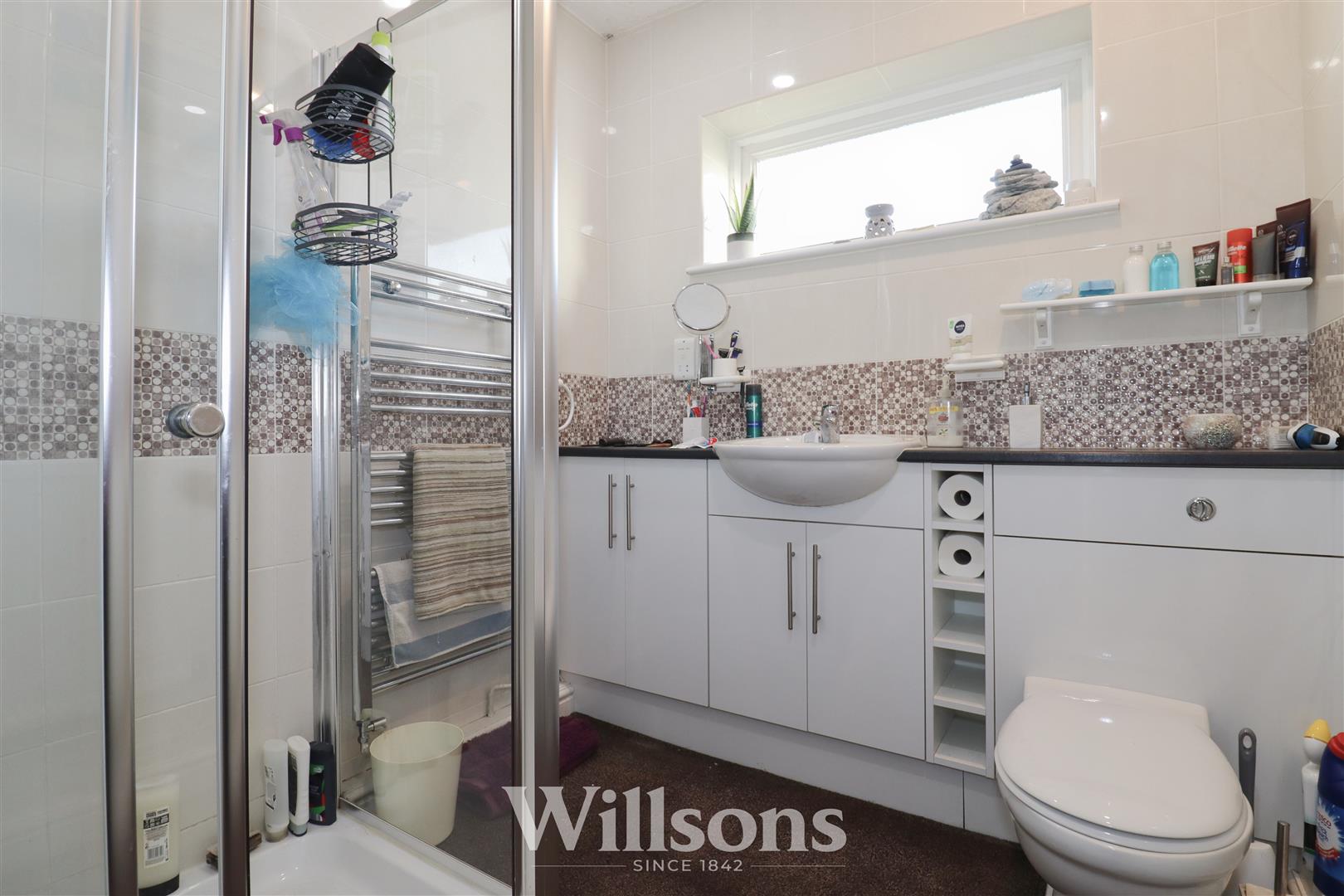 Fitted with a three piece suite consisting an electric shower with glazed shower enclosure, WC and wash hand basin within a combination vanity unit with additional storage. As well as a stainless steel towel radiator, shaver socket, high, extractor fan, downlighting, fully tiled walls, carpeted flooring and high level window with obscure glazing.