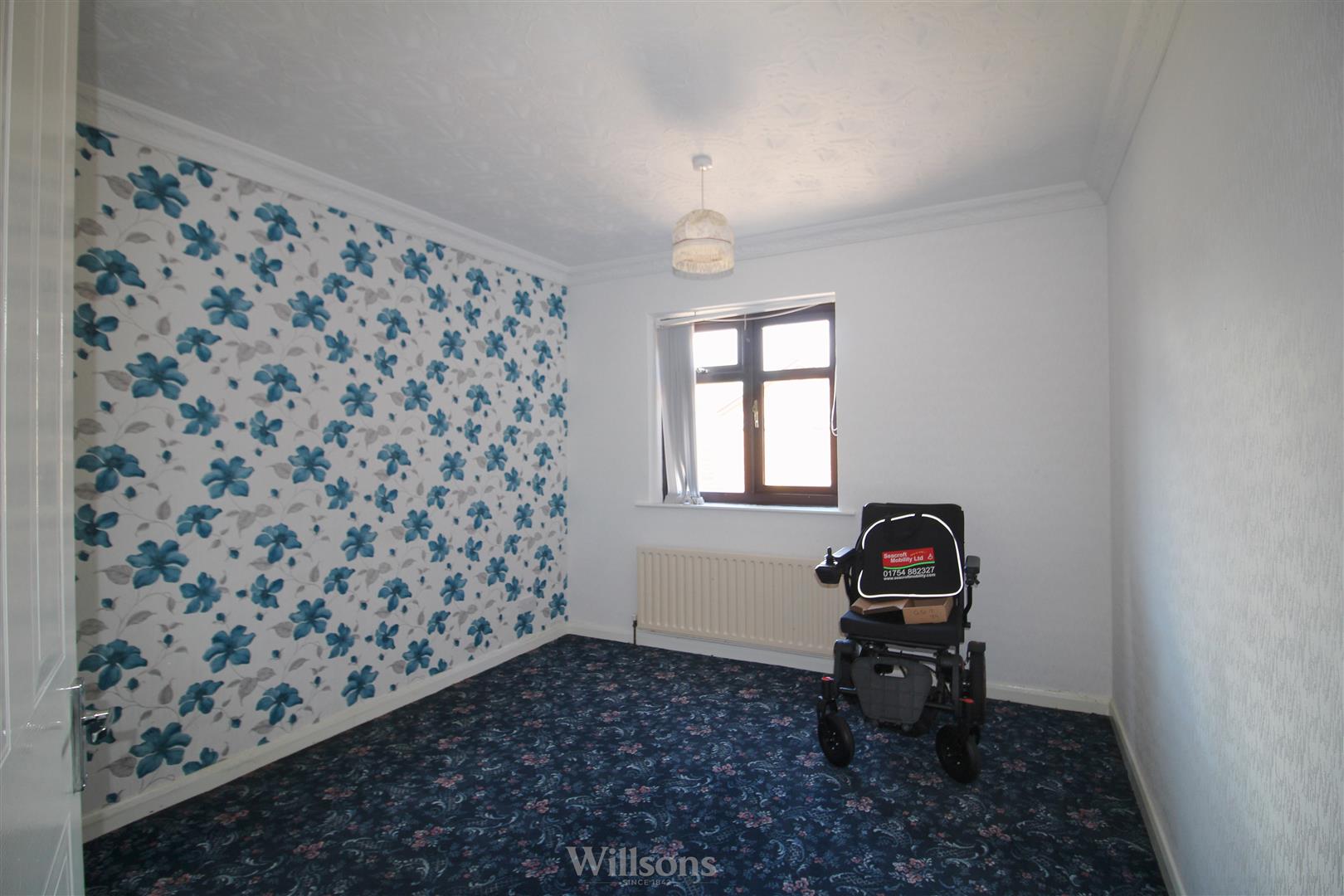 With carpeted flooring, built in wardrobes and window to the front of the property.