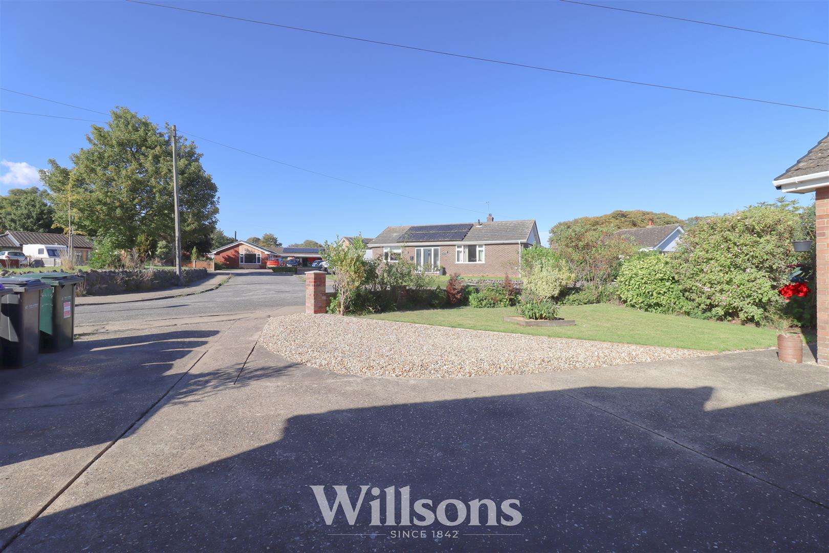 With sweeping concrete driveway with space to accommodate several cars and/or caravan, set to lawns with boundaries of dwarf wall, hedging and fencing with mature shrubs and plants, concrete pathways to the front and left of the property, area of gravel, concealed LPG bottle storage, external lighting and power points.
