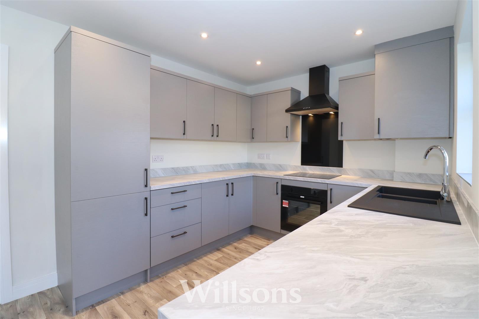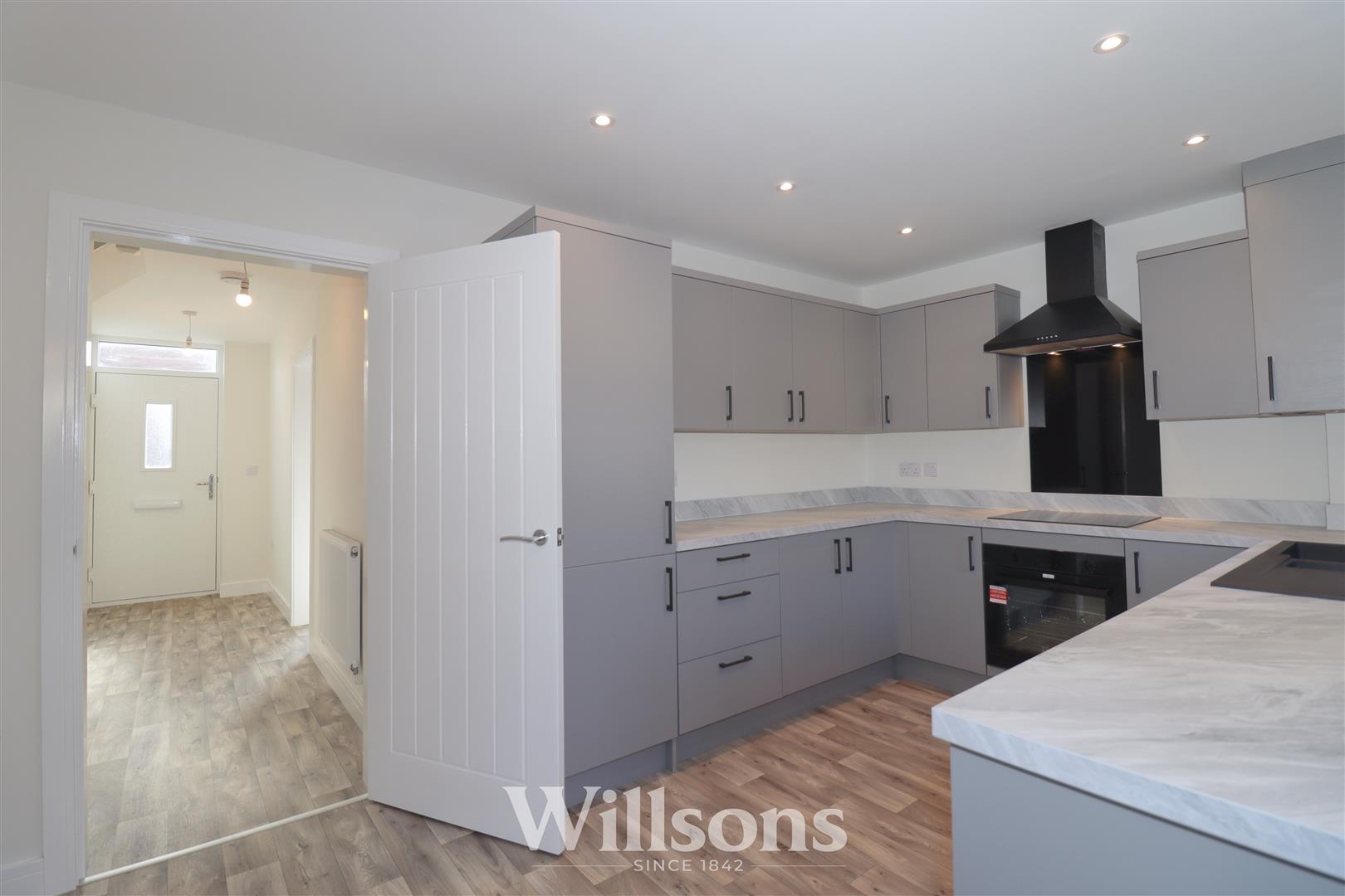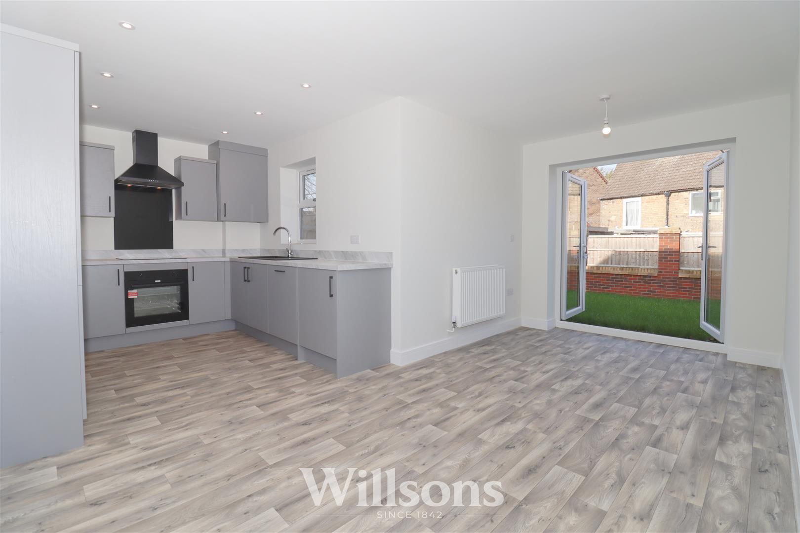 Generously sized ‘L’-shaped dining kitchen with a range of wall and base units with new integrated appliances to include 60/40 fridge freezer, full-size dishwasher, washing machine, four ring ceramic hob with cooker below and lit extractor hood over, utensil and pan drawers, sink with 1.5 bowls and mixer tap, concealed wall-hung gas combination Ideal boiler, matt marble effect worktop with corresponding upstands, downlighting, radiator, high-level socket and aerial point for wall mounted television, vinyl flooring and French door to the rear patio and garden.
