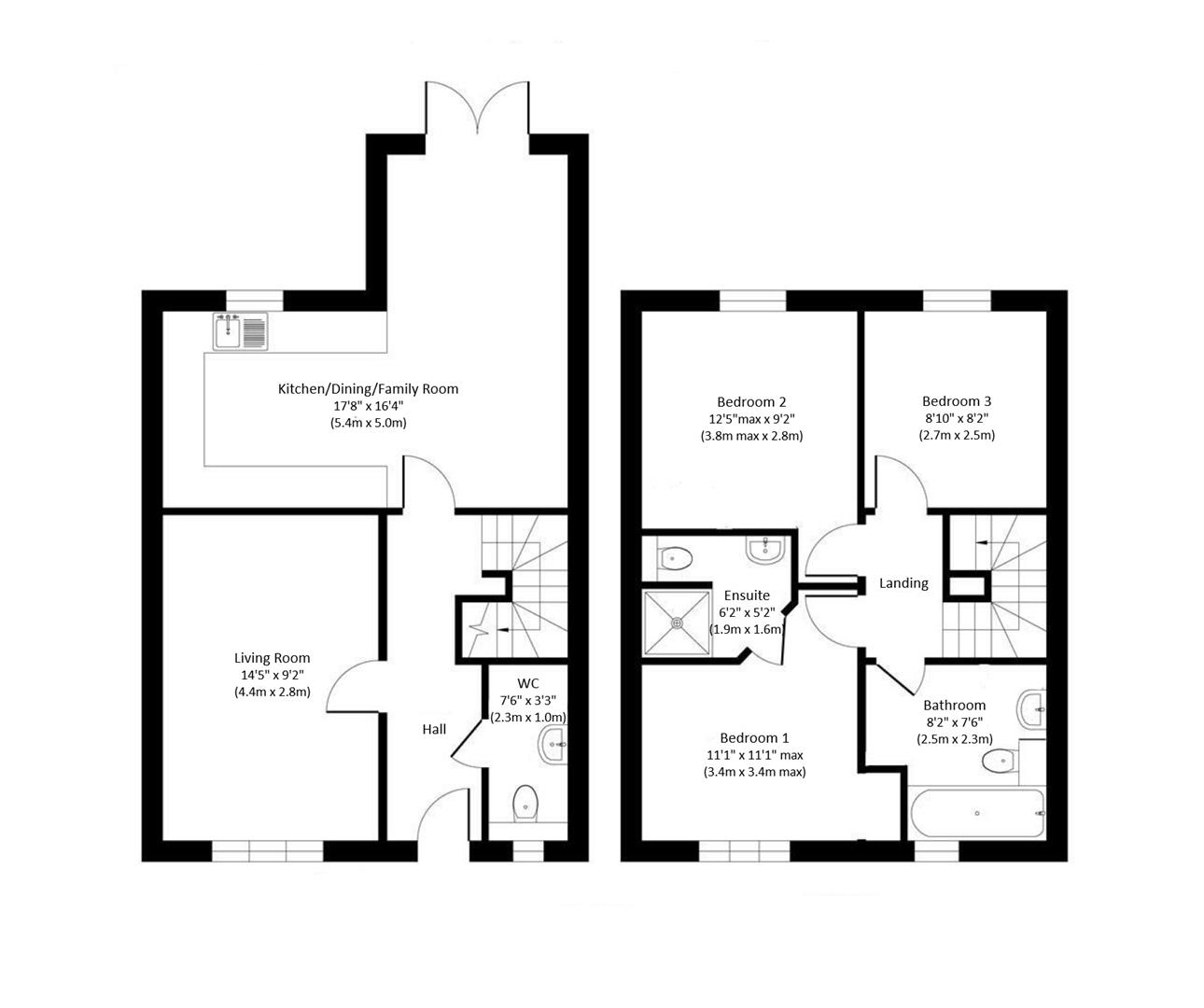 Ground Floor WC - 2.3m x 1.0m (7'6" x 3'3")