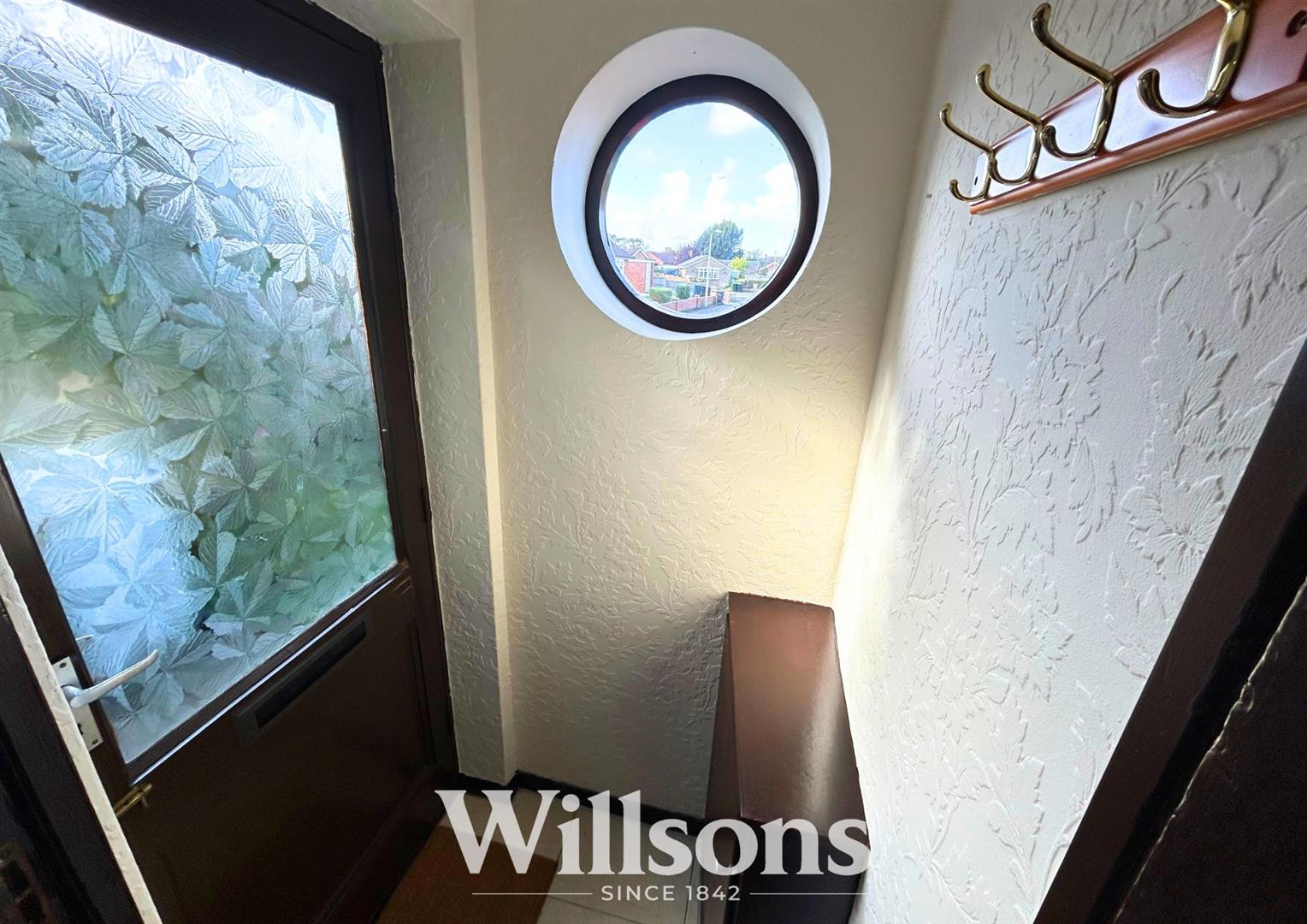 UPVC double glazed round window, built in cupboard housing fuse box and metres, light fitting, coat hooks.