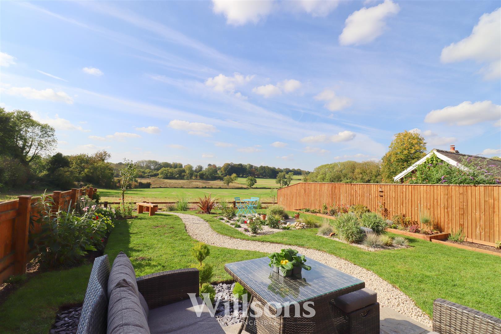 With partial decorative wall boarding, wall lights, radiator, picture window to the rear of the property with views over open fields and carpeted flooring.