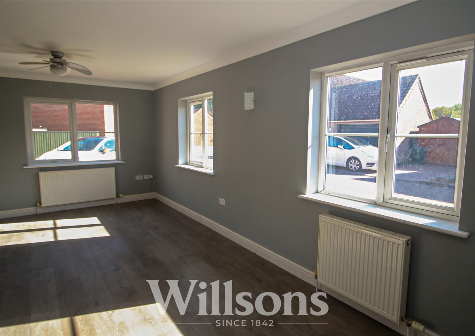 Having 3 Upvc double glazed windows, grey laminate effect flooring, 3 wall light points, ceiling fan/light, TV point, 2 radiators.