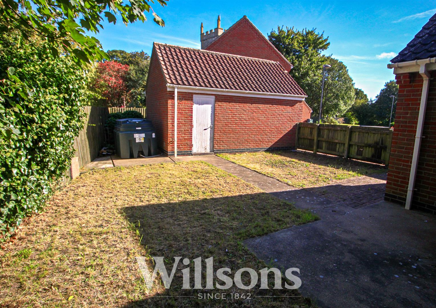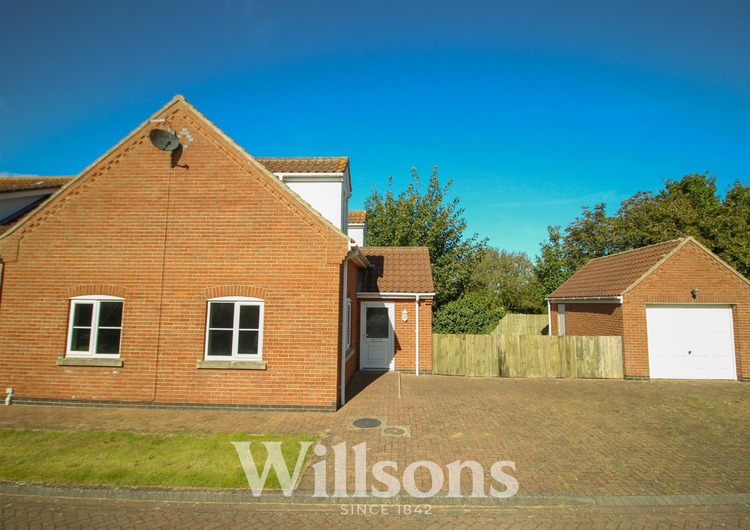 The property is approached over a block paved parking area with a path leading to the front door and around to the side of the property. A low close boarded fence with gate leads to the rear garden.