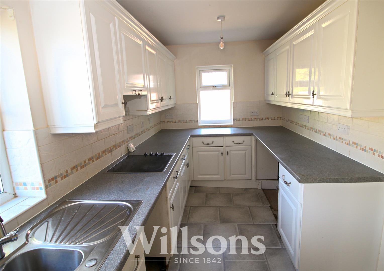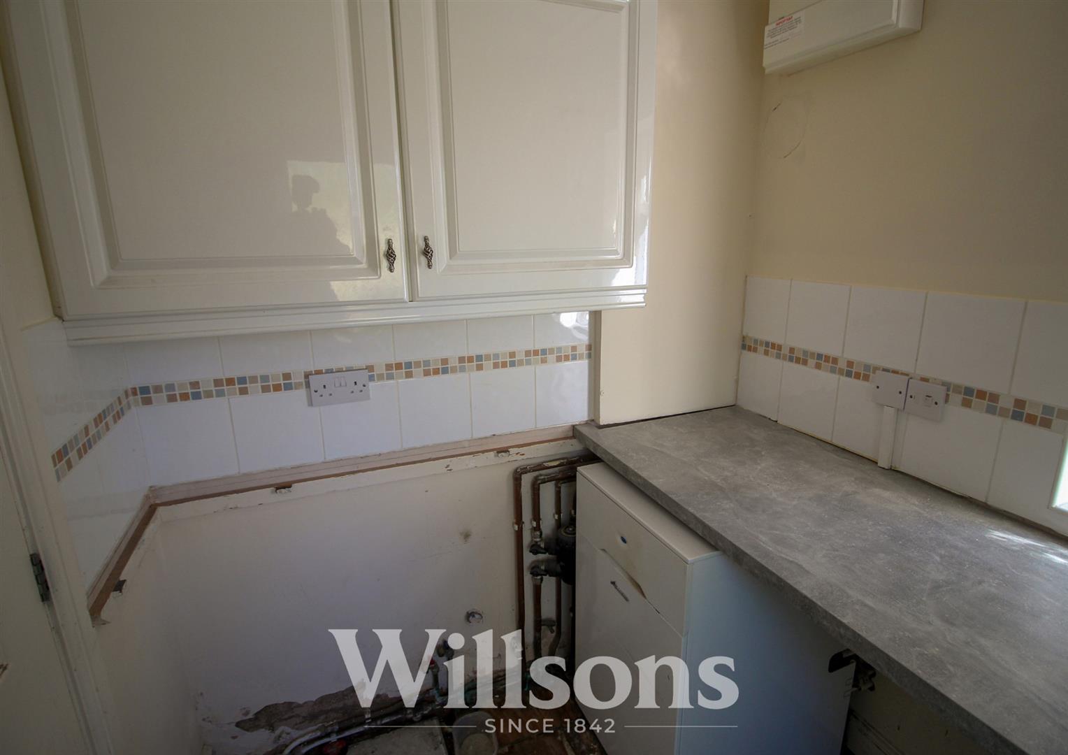 Contains the floor mounted oil fired central heating boiler, matching wall cupboards and worksurface, space and plumbing for washing machine, dishwasher and dryer, Upvc double glazed side window, Upvc double glazed rear exterior door, extractor fan, laminate tiled effect flooring.