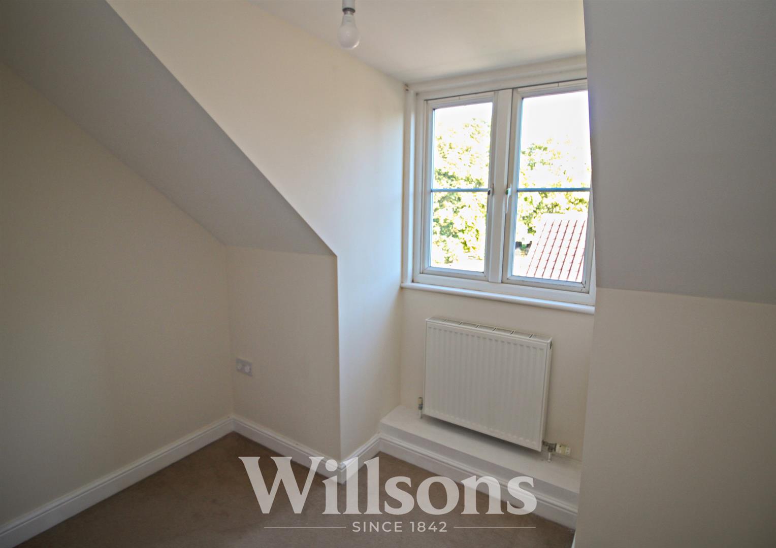 With par sloping ceiling to 4′, Upvc double glazed side window, radiator.
