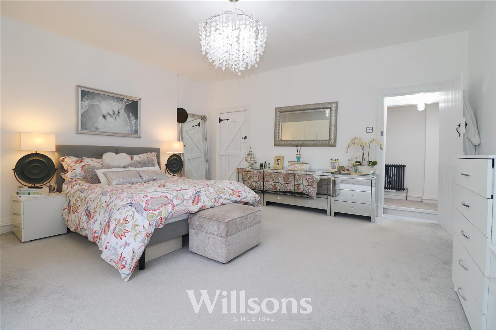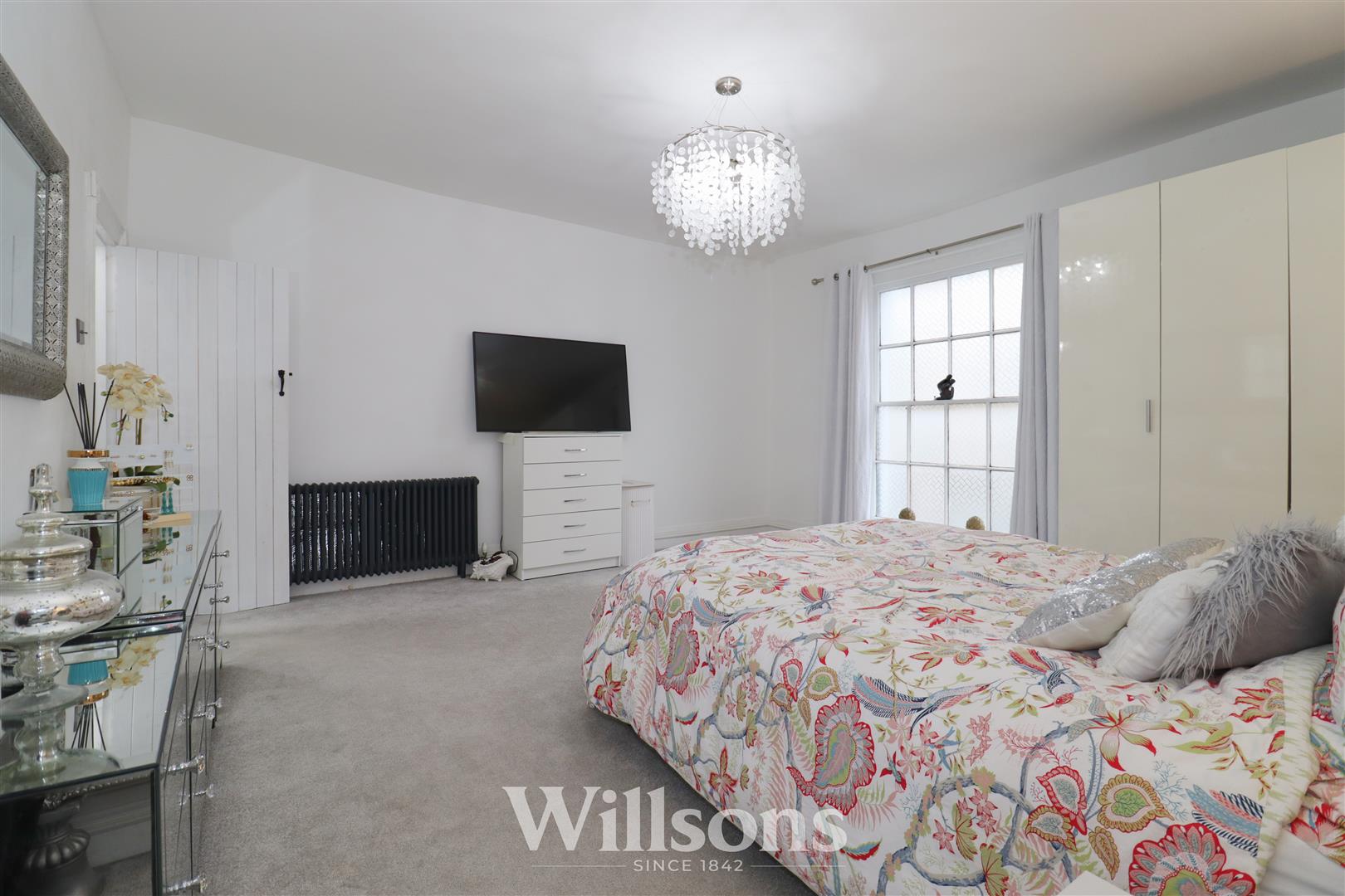With two tall feature Georgian bar windows with low sills, Victorian style radiator and carpeted flooring.